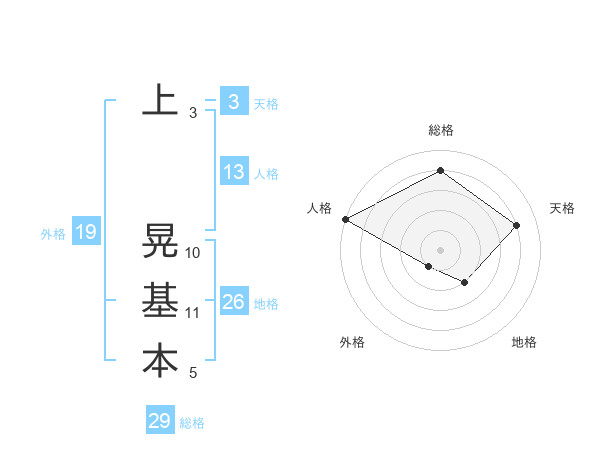上 晃基本さんの総格は29画の4点!