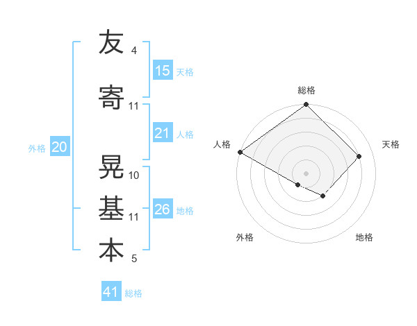 友寄 晃基本さんの天格は15画の4点!