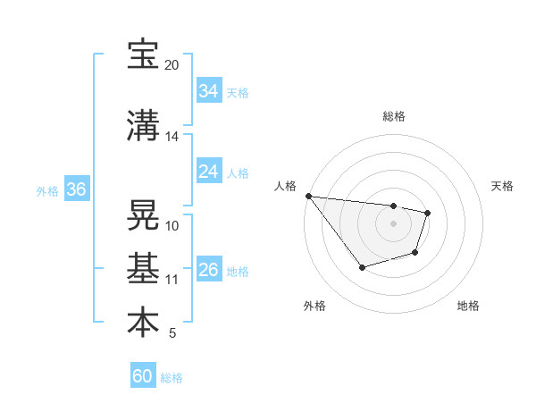 宝溝 晃基本さんを姓名の画数から五運を鑑定