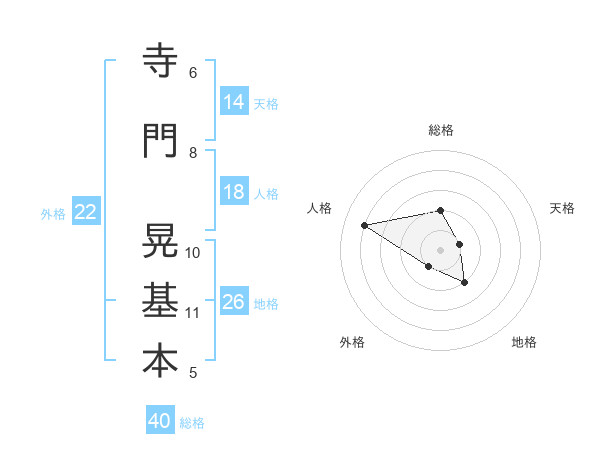 寺門 晃基本さんを姓名の画数から五運を鑑定