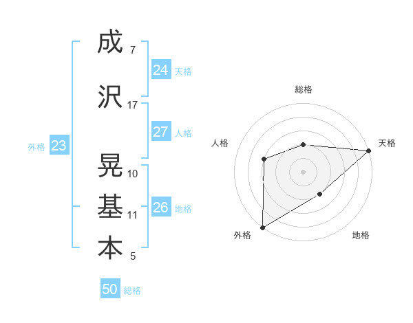成沢 晃基本さんを姓名の画数から五運を鑑定