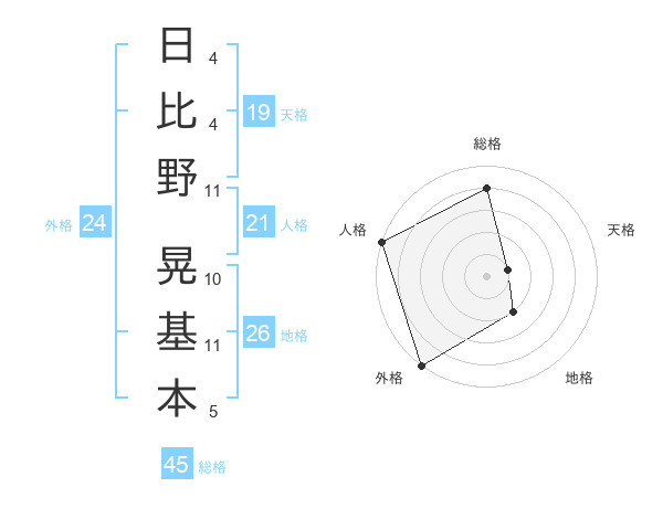 日比野 晃基本さんを姓名の画数から五運を鑑定