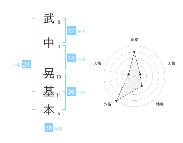 武中 晃基本さんを姓名の画数から五運を鑑定