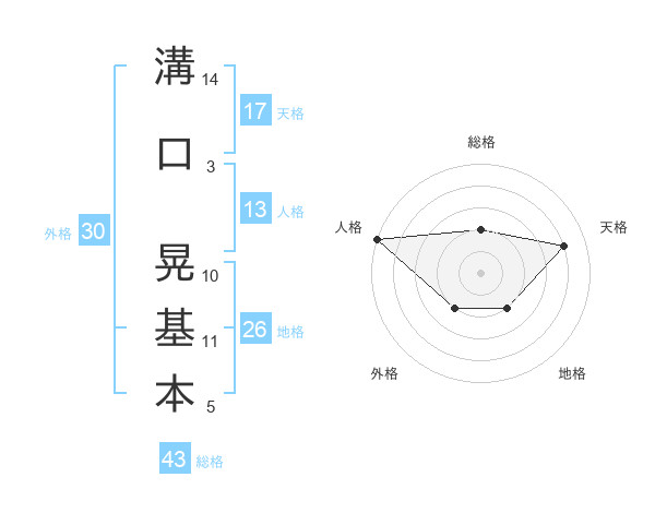 溝口 晃基本さんの天格は17画の4点!