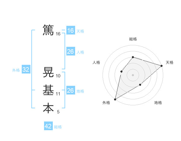 篤 晃基本さんの天格は16画の5点!