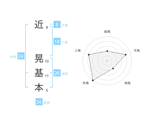近 晃基本さんの総格は34画の2点!