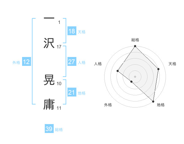一沢 晃庸さんを姓名の画数から五運を鑑定