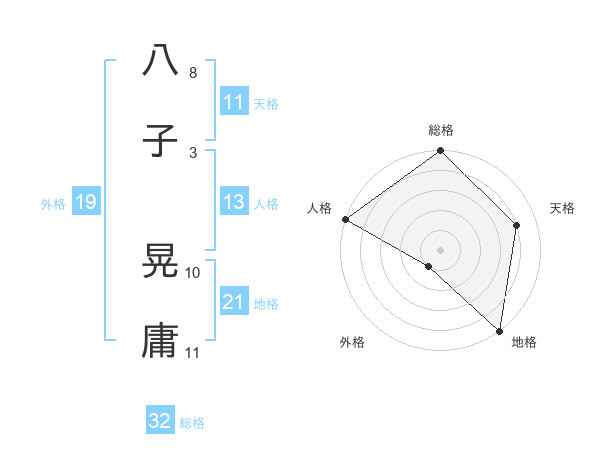 八子 晃庸さんの総格は32画の5点!