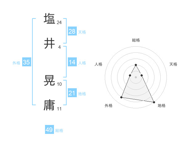 塩井 晃庸さんを姓名の画数から五運を鑑定