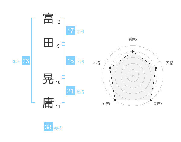 富田 晃庸さんの総格は38画の4点!