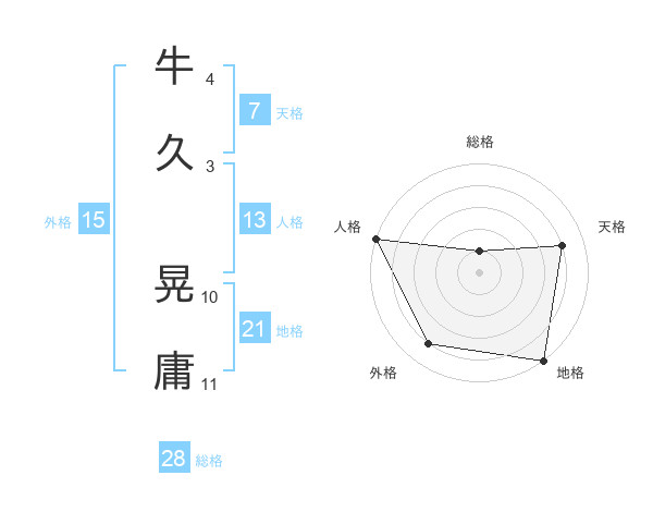 牛久 晃庸さんの総格は28画の1点!