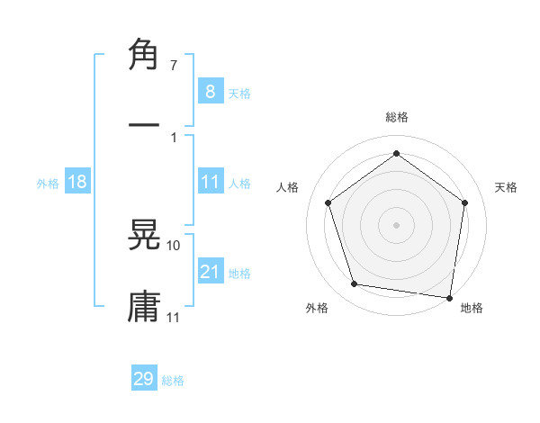 角一 晃庸さんを姓名の画数から五運を鑑定