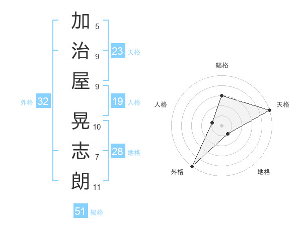 加治屋 晃志朗さんの総格は51画の3点