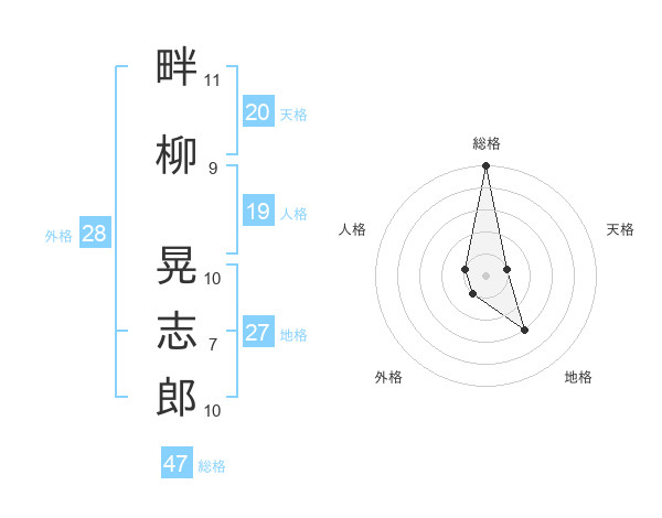 畔柳 晃志郎さんの総格は47画の5点!