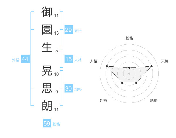 御園生 晃思朗さんを姓名の画数から五運を鑑定