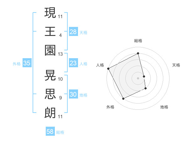 現王園 晃思朗さんを姓名の画数から五運を鑑定