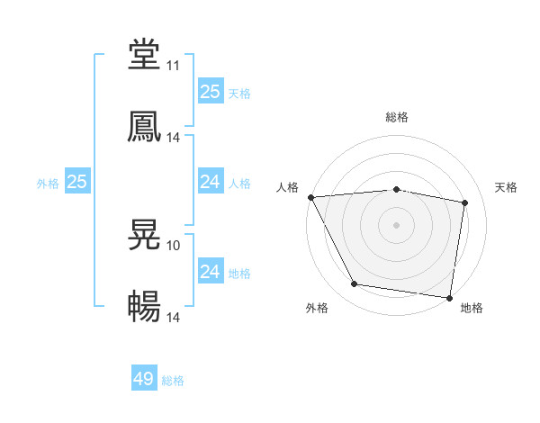 堂鳳 晃暢さんの外格は25画の4点!