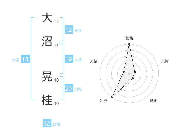 大沼 晃桂さんの総格は32画の5点!