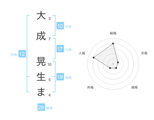 大成 晃生まさんを姓名の画数から五運を鑑定