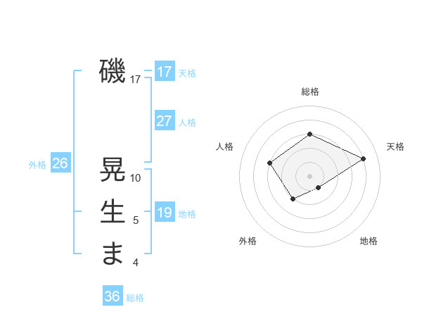 磯 晃生まさんの天格は17画の4点!