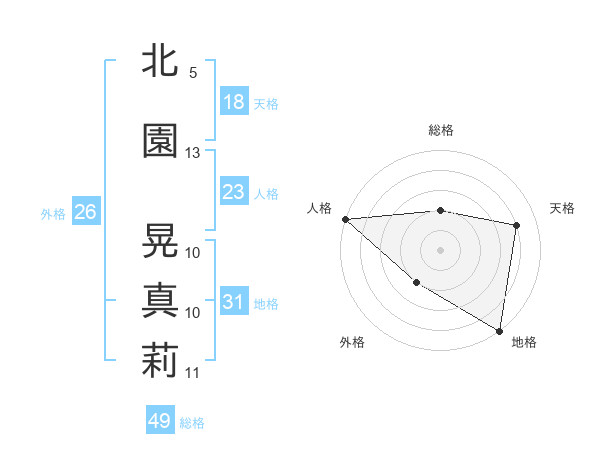 北園 晃真莉さんを姓名の画数から五運を鑑定