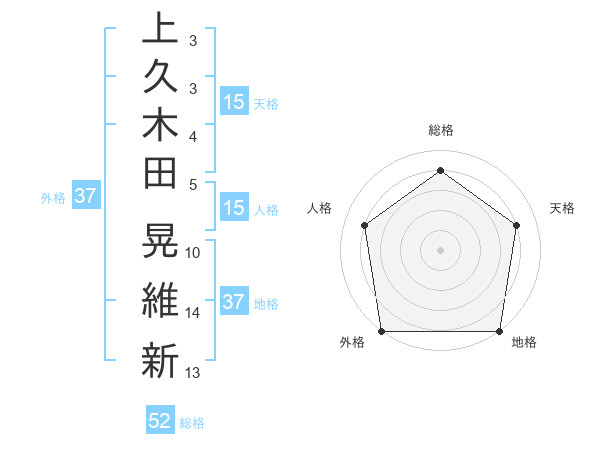 上久木田 晃維新さんを姓名の画数から五運を鑑定