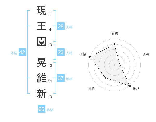 現王園 晃維新さんを姓名の画数から五運を鑑定
