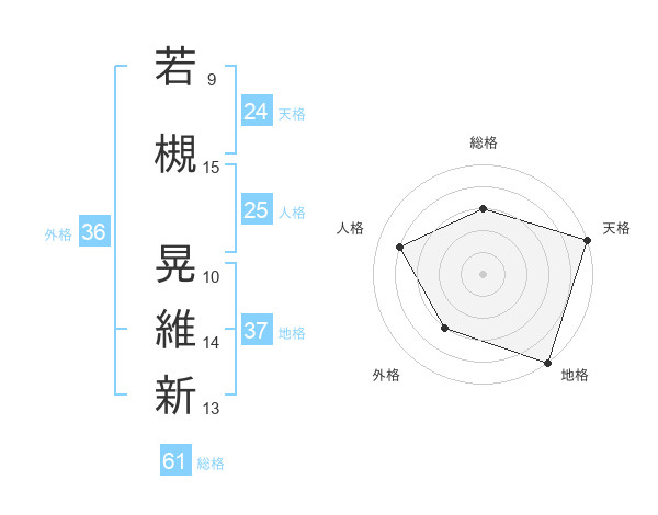 若槻 晃維新さんの総格は61画の3点!