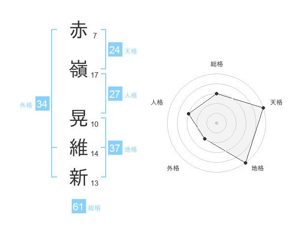 赤嶺 晃維新さんの外格は34画の2点!