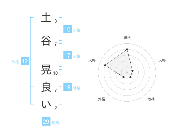 土谷 晃良いさんを姓名の画数から五運を鑑定