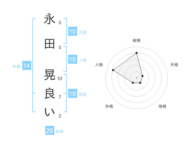 永田 晃良いさんを姓名の画数から五運を鑑定