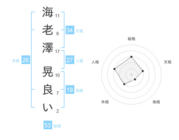 海老澤 晃良いさんを姓名の画数から五運を鑑定