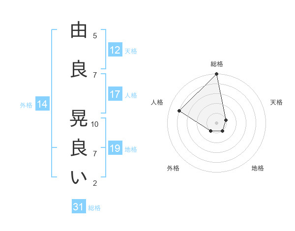 由良 晃良いさんを姓名の画数から五運を鑑定