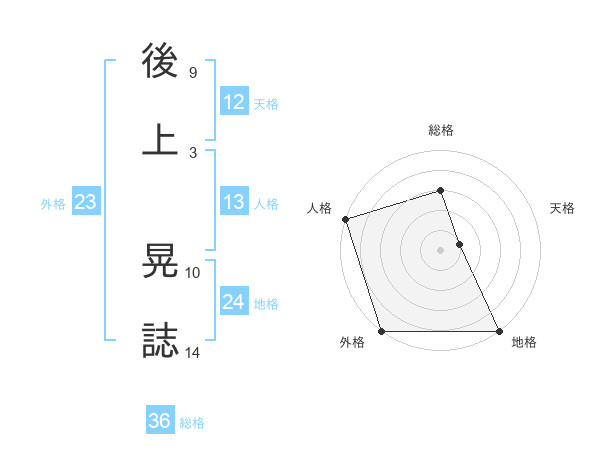 後上 晃誌さんを姓名の画数から五運を鑑定