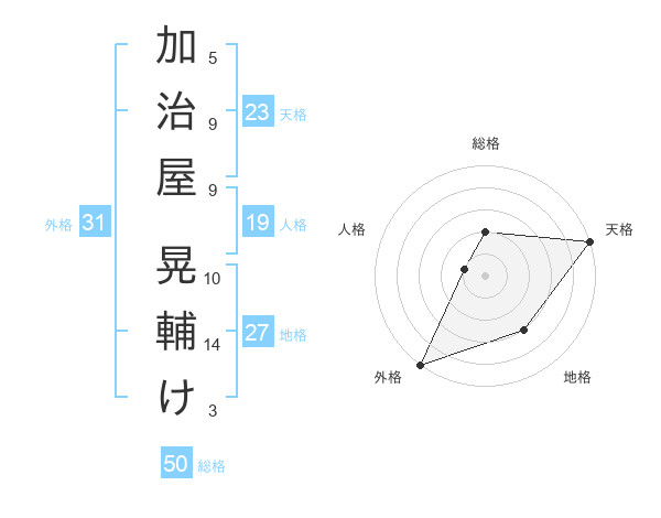 加治屋 晃輔けさんの天格は23画の5点