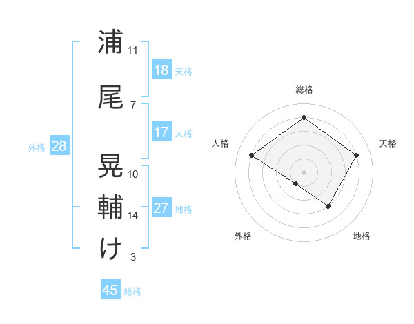 浦尾 晃輔けさんの天格は18画の4点!