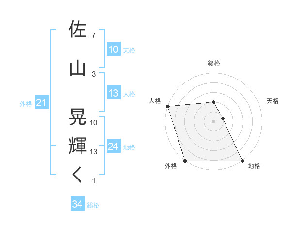 佐山 晃輝くさんを姓名の画数から五運を鑑定