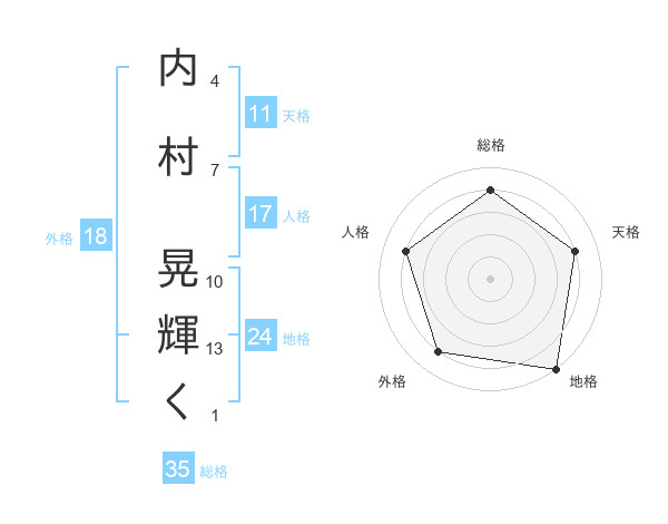 内村 晃輝くさんを姓名の画数から五運を鑑定