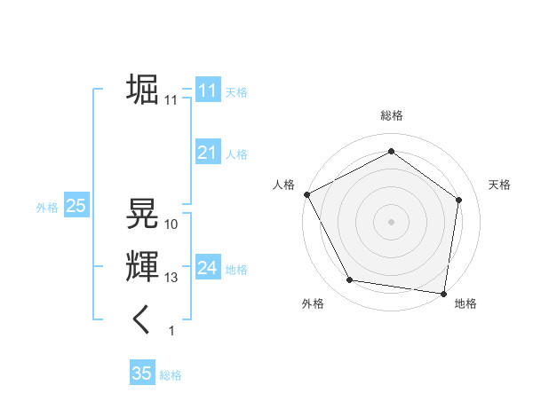 堀 晃輝くさんの地格は24画の5点!