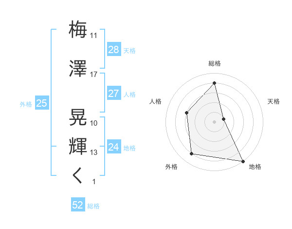 梅澤 晃輝くさんを姓名の画数から五運を鑑定