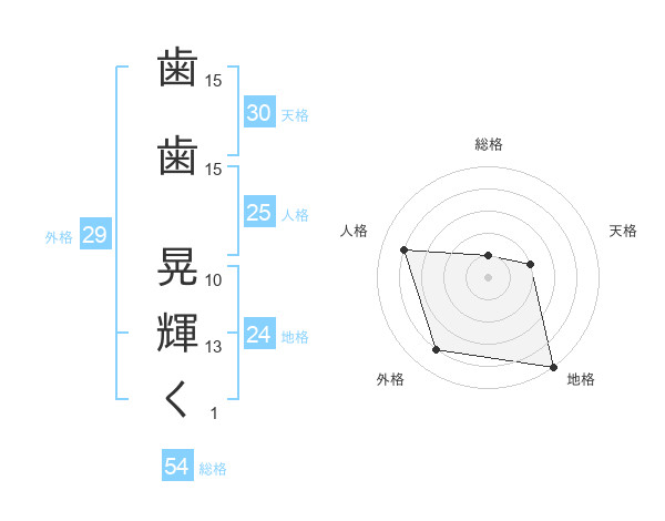 歯歯 晃輝くさんの総格は54画の1点!