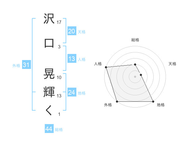 沢口 晃輝くさんを姓名の画数から五運を鑑定