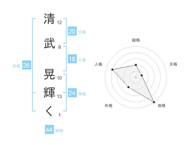 清武 晃輝くさんを姓名の画数から五運を鑑定