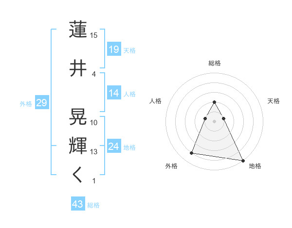 蓮井 晃輝くさんの総格は43画の2点!