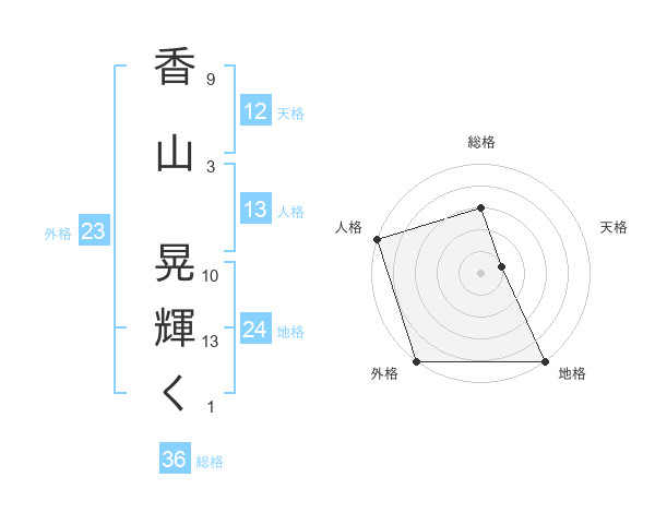 香山 晃輝くさんを姓名の画数から五運を鑑定
