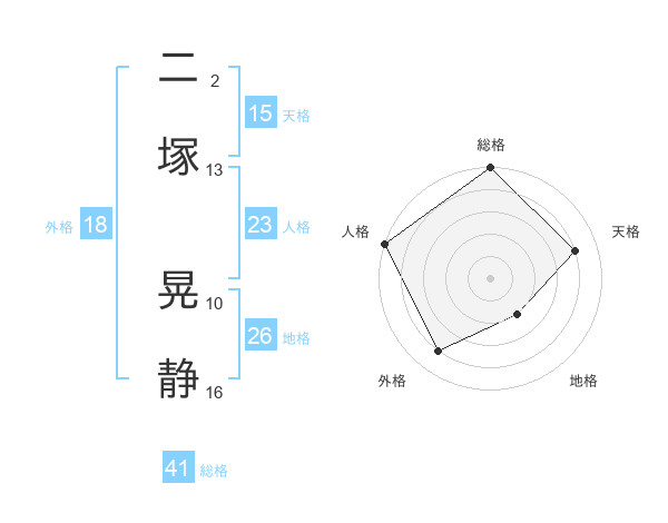 二塚 晃静さんの総格は41画の5点!