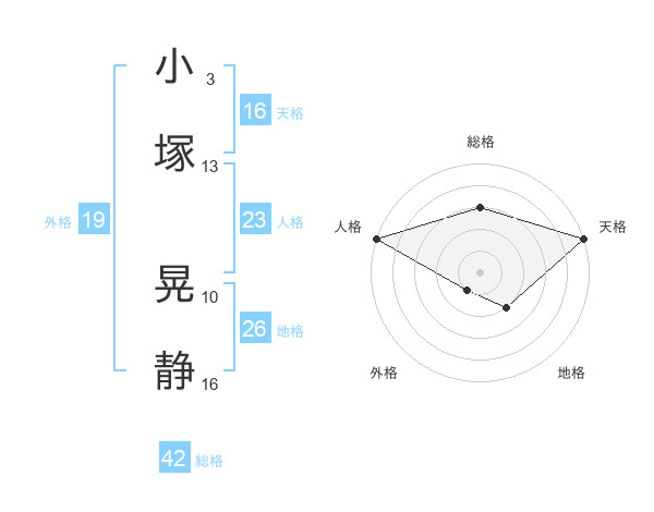 小塚 晃静さんを姓名の画数から五運を鑑定