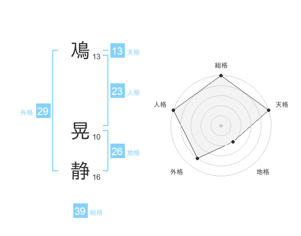 鳰 晃静さんを姓名の画数から五運を鑑定