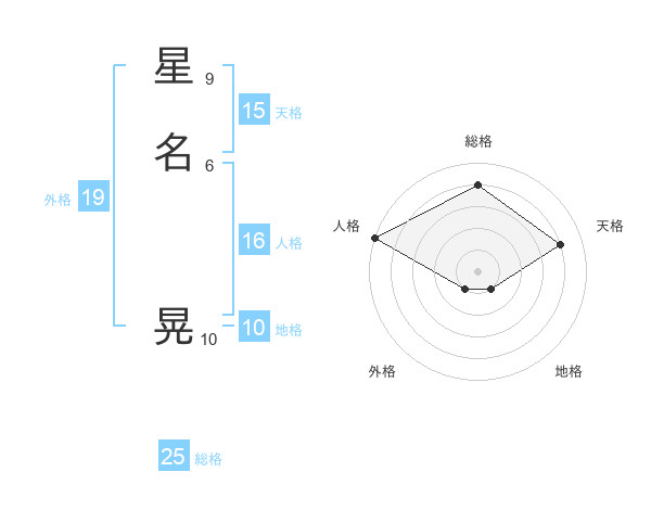 星名 晃さんの総格は25画の4点!