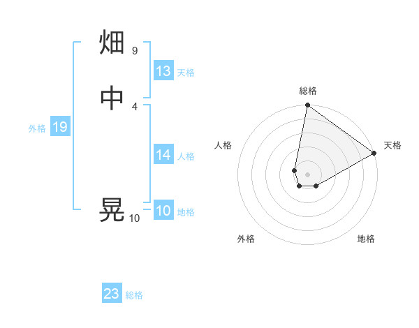 畑中 晃さんの総格は23画の5点!